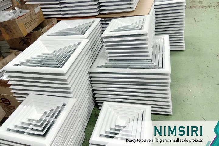 ซึ่ง นิมสิริ เป็นอีกหนึ่งโรงงานใหญ่ที่มีชื่อเสียงในเรื่องการผลิต หน้ากากแอร์ ทุกรูปแบบ เพราะผลิตให้ลูกค้ามากว่า 20 ปี ได้รับการรับรองมาตรฐาน การันตีโดยองค์กรชั้นนำ ให้บริการทั้งลูกค้ารายเล็กและรายใหญ่ ไม่ว่าจะเป็นผู้รับเหมา เจ้าของโรงงาน โรงพยาบาล ห้างสรรพสินค้า