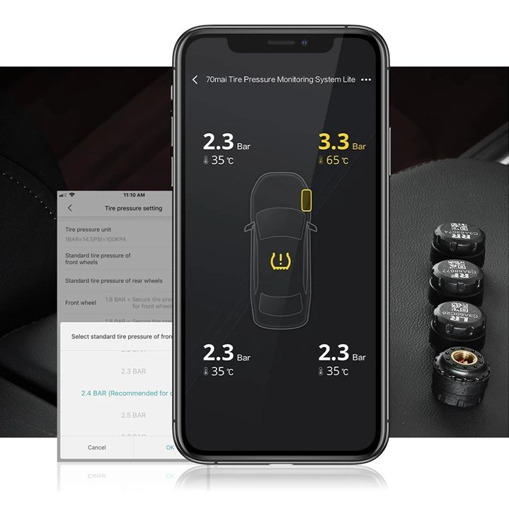 - แอป“ 70mai” สามารถใช้เพื่อดูข้อมูลและปรับการตั้งค่าอุณหภูมิและความดันลมยาง