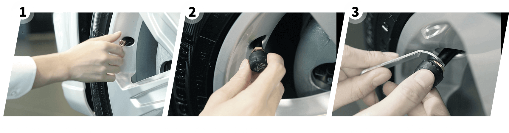 2. ติดตั้งเซ็นเซอร์บนหัวฉีดยาง หมุนเซ็นเซอร์เข้ากับวาล์วยางตามเข็มนาฬิกา