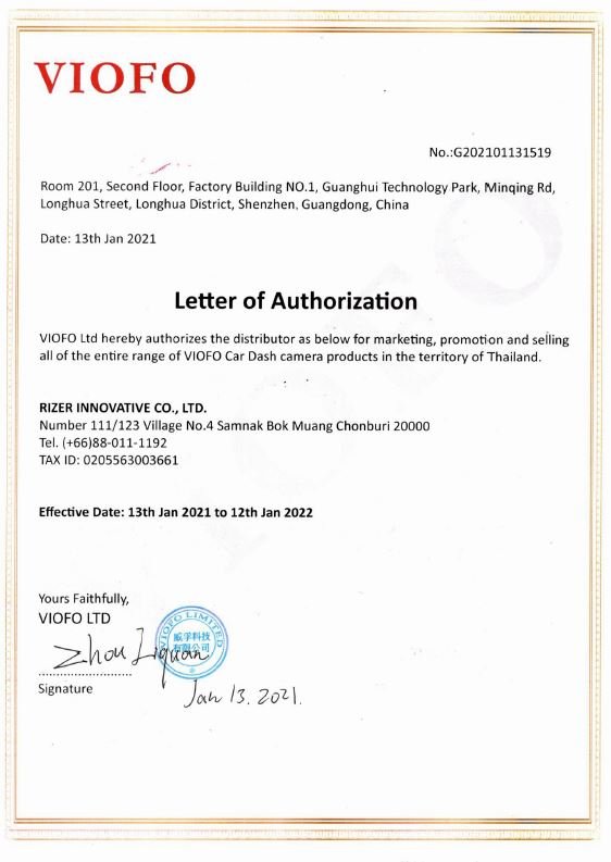 สั่งซื้อกล้องติดรถ VIOFO A139 3CH จากตัวแทนจำหน่ายอย่างเป็นทางการในไทย สามารถสั่งซื้อได้ที่ บริษัท ไรเซอร์ อินโนเวทีฟ จำกัด ตามช่องทางดังนี้