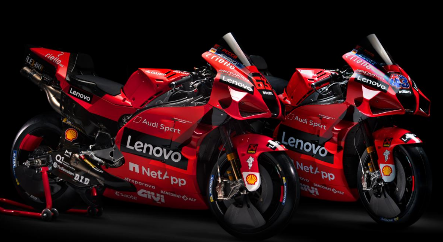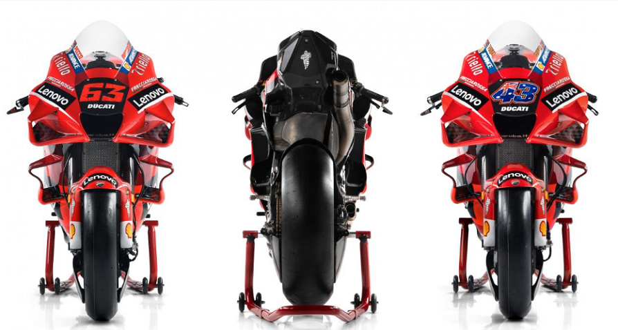 Ducati ปี 2021 ยังคงมีสีแดงโดดเด่นอันเป็นเอกลักษณ์ของทีมมาพร้อมกับโลโก้สปอนเซอร์ Lenovo ผู้นำทางด้านเทคโนโลยี PC ที่ประกาศเซ็นสัญญาฉบับใหม่สนับสนุนทีมดูคาติต่อไปอีก 3 ปี