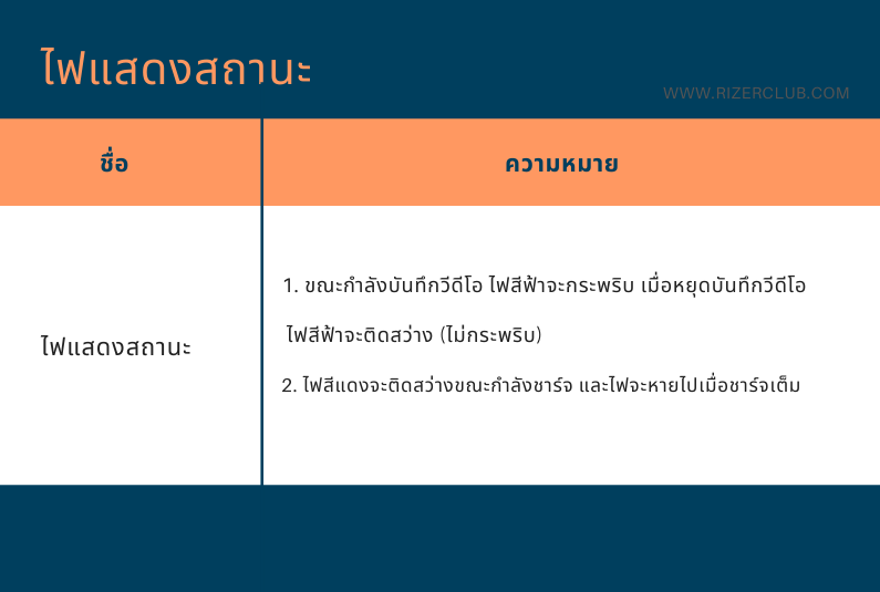 12.1 ขณะกำลังบันทึกวีดีโอ ไฟสีฟ้าจะกระพริบ เมื่อหยุดบันทึกวีดีโอ ไฟสีฟ้าจะติดสว่าง (ไม่กระพริบ)