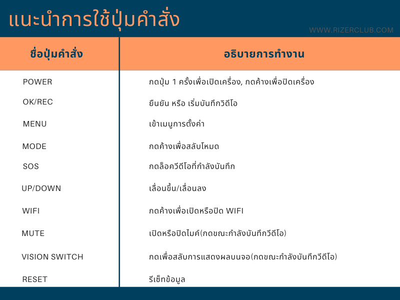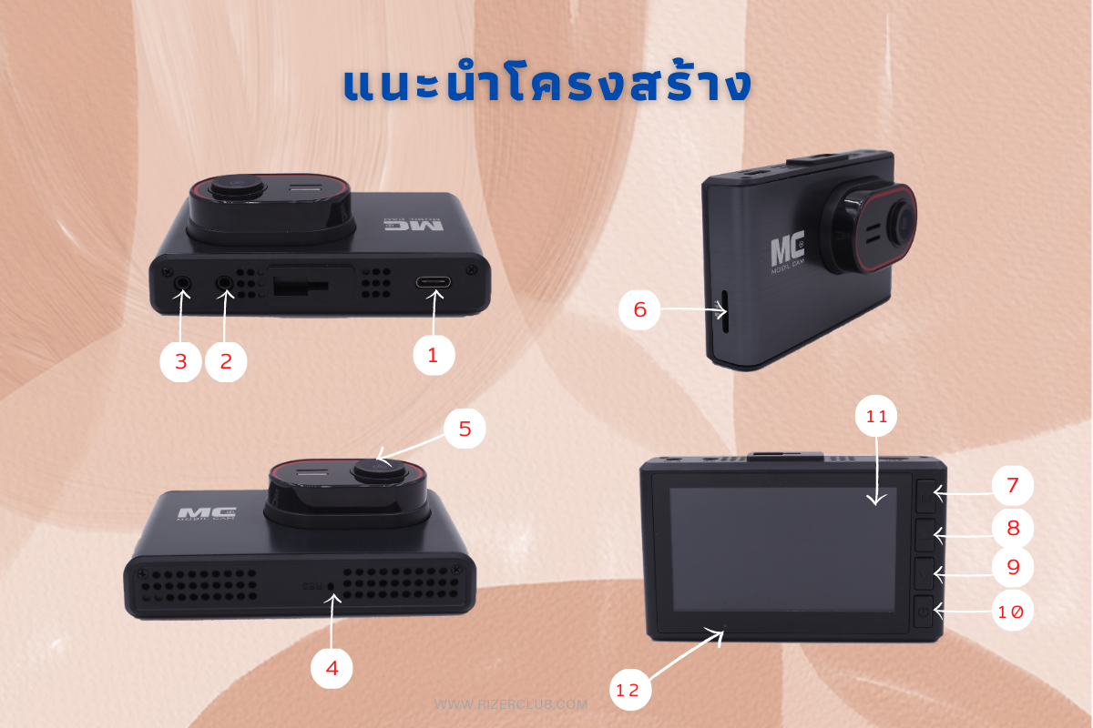 7. MENU/MODE/SOS/BACK@CANCLE (ปุ่มเข้าเมนู/ ตั้งค่าโหมด/ กดล็อควีดีโอ/ กดกลับและกดยกเลิก)