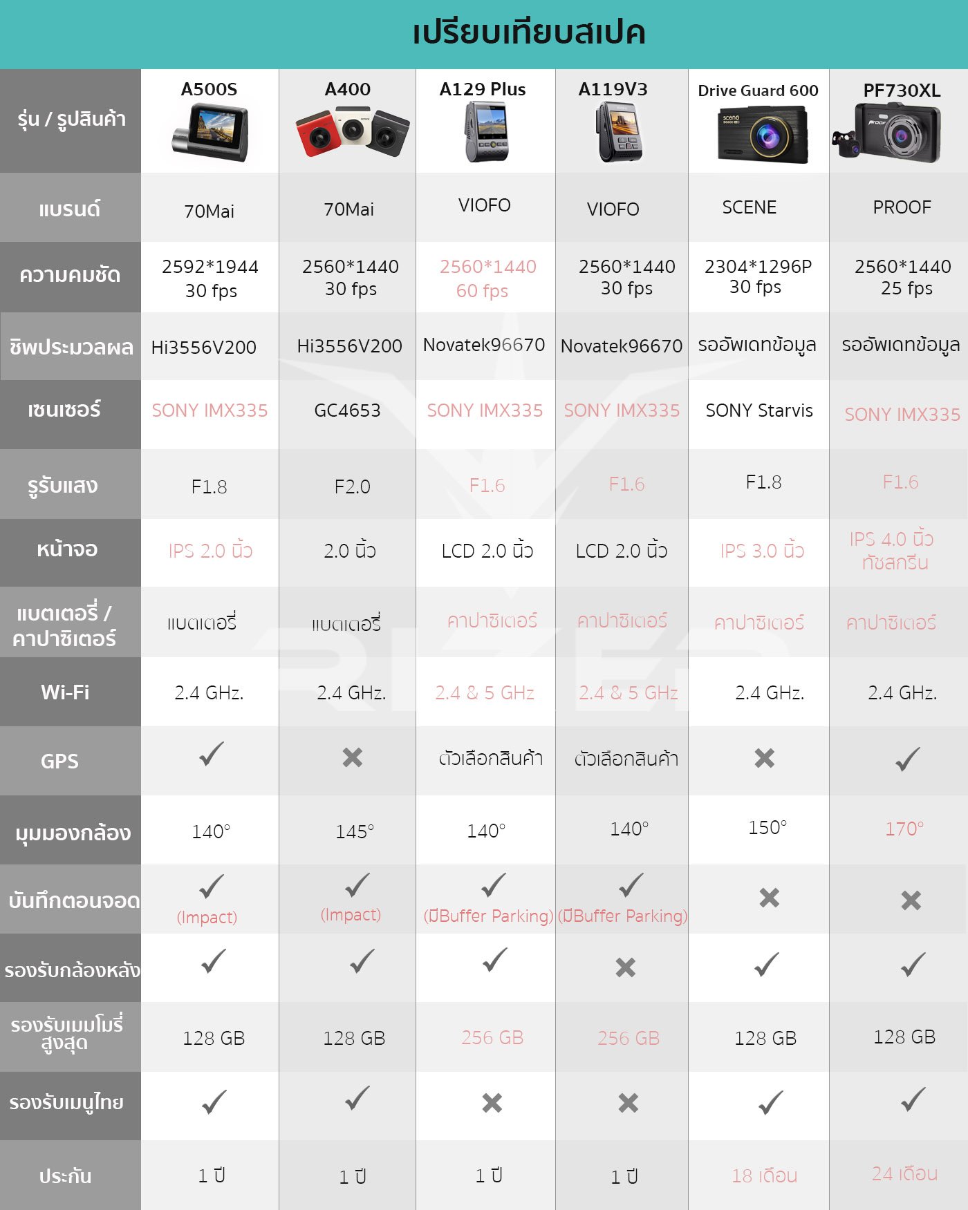 หากใครกำลังมองหากล้องหน้ารถที่คมชัดระดับ 2K แล้วล่ะก็ ไม่ควรมองข้าม รุ่นนี้อย่างเด็ดขาด นอกจากจะให้ความละเอียดถึง 2560*1600P แล้วยังใช้เซนเซอร์ Sony IMX335 รูรับแสงกว้างถึง F1.6 ให้ภาพความสว่างคมชัด มีเทคโนโลยีปรับแสง True HDR สว่างทั่วทั้งภาพในเวลากลางคืน Built in GPS มาแล้วในตัว ไม่ต้องซื้อเพิ่ม รุ่นนี้ราคาย่อมเยาว์กว่า A129 Plus นะครับ