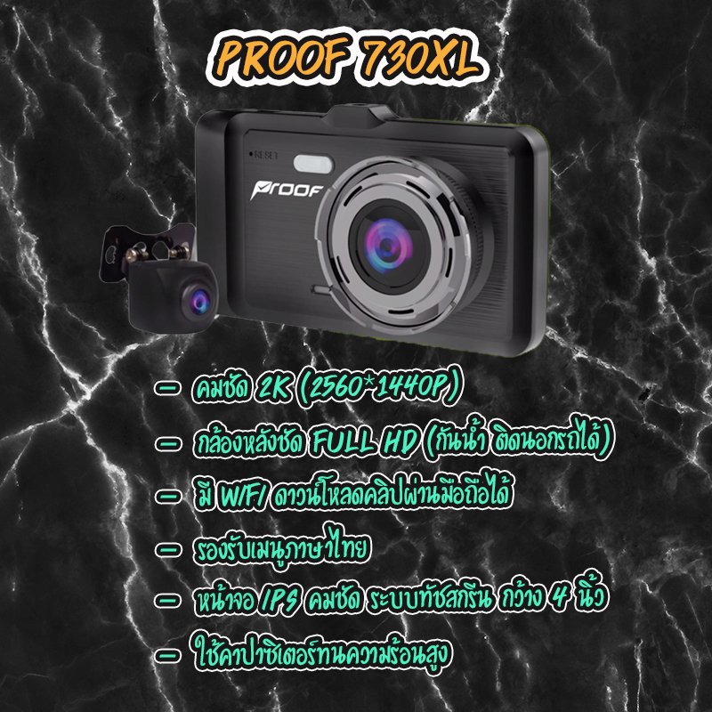ใครที่กำลังมองหากล้องติดหน้ารถขนาดจอใหญ่ๆ ระบบทัชสกรีน เมนูภาษาไทย ไม่ควรพลาด กับรุ่น Proof PF730XL หน้าจอคมชัด IPS กว้าง 4 นิ้ว ระบบทัชสกรีน มี WiFi รวมถึง GPS ในตัวครบครัน ความละเอียดชัด 2K 2560*1440P และข้อดีอีกอย่างคือสายของกล้องหลังรุ่นนี้ทำออกมายาวพิเศษ 8 เมตร ติดได้ทั้งรถเก๋ง รถกะบะ รถตู้ เหมาะกับรถขนส่ง หรือรถบริษัท ที่เอาไว้ติดตามพฤติกรรมคนขับ ครับ