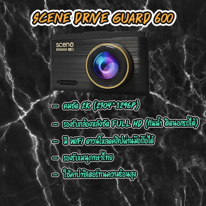 รุ่นนี้พัฒนาต่อยอดมาจาก scene 400Plus โดยกล้องมีความละเอียด 2K หน้าจอกว้าง 3 นิ้ว เหมาะสำหรับคนมีอายุ หรือใครต้องการเห็นเหตุการณ์แบบหน้าจอใหญ่ๆ SCENE DRIVE GUARD 600รุ่นนี้ไม่ควรมองข้ามเลย ที่สำคัญรองรับการติดตั้งกล้องมองหลัง มีเส้นกะระยะให้ชัดเจน รองรับเมนูภาษาไทย ใช้งานง่ายมากๆ