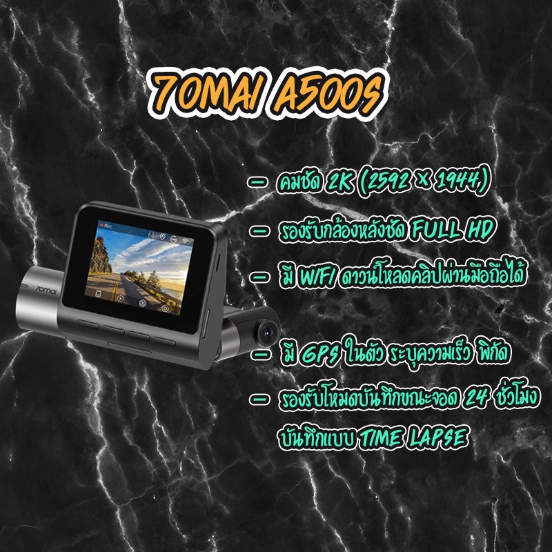 หากจะพูดถึงกล้องติดรถ ณ ปัจจุบัน นาทีนี้คงไม่มีเพื่อนๆท่านไหนไม่รู้จักเจ้า 70Mai อย่างแน่นอนโดยแบรนด์ 70 Mai เป็นสินค้าในเครือ xiaomi ที่ใครๆเป็นสาวก xiaomi ย่อมต้องรู้แน่ครับว่า นโยบายของบริษัทเค้าคือ ดีไซน์โฉบเฉี่ยว ล้ำสมัย ราคาย่อมเยาว์ ทีนี้มาดูคุณสมบัติกัน โดย A500S พัฒนามาจากรุ่น 70Mai Pro ที่เพิ่มฟังก์ชั่น GPS เข้ามาแบบ Built in ในกล้องเลย โดยไม่ต้องซื้อเป็นอุปกรณ์เสริมให้ยุ่งยากเหมือนกับรุ่นก่อนหน้า มีเพิ่มก็ต้องมีลดกันนิดหน่อย โดยรุ่นนี้จะไม่สามารถใช้ฟังก์ชั่นสั่งงานด้วยเสียงได้เหมือนกับรุ่น 70Mai Pro นั่นเอง แต่แอดมองว่า บางครั้งคำสั่งเสียงก็แจ้งเตือนเราบ่อยเกินไป จนอาจทำให้เกิดความรำคาญได้ครับ