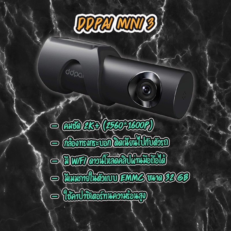 กล้องดีไซน์โฉบเฉี่ยว ทรงกระบอก ที่ได้รับรางวัลการออกแบบดีเยี่ยม มีความละเอียดคมชัด 1600P(2K+) @30FPS ตัวกล้องหมุนเลนส์ได้ 360 องศา มาพร้อมกับรูรับแสงที่กว้างถึง F1.8 ให้ภาพกลางคืนสว่างคมชัด ที่สำคัญ DDPAI MINI3 มีระบบ SR โดยมีการแสดงข้อมูลความเร็ว ระยะทาง ตำแหน่งความสูง อัตราเร่ง และข้อมูลอื่น ๆ ในวิดีโอด้วย (รุ่นอื่นๆทำไม่ได้นะครับขอบอก) หมดห่วงเรื่องเมมเออเร่อ หรือกล้องไม่บันทึกไฟล์อีกต่อไป ด้วยการบันทึกไฟล์ผ่านหน่วยความจำภายในแบบ EMMC ขนาด 32GB เจ้าDDPAI MINI3 มาพร้อมกับรีโมท ไว้สำหรับล็อคคลิปไฟล์ขณะเกิดอุบัติเหตุ สะดวกสบายไปอีกขั้น