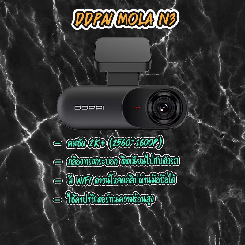 DDPAI Mola N3 ตัวกล้องมาพร้อมดีไซน์เฉียบคม ขนาดเล็ก ไม่บังวิสัยทัศน์การมอง ความคมชัด 2K+ พร้อมระบบ WIFI ดาวน์โหลดและส่งต่อภาพหลักฐานของคุณหลังเกิดเหตุได้ทันที บิ้วอิน GPS ในตัว ระบุพิกัดและความเร็วรถได้อย่างแม่นยำ DDPAI Mola N3 รุ่นนี้จะใกล้เคียงกับตัว Mini3 ต่างกันที่ ไม่มีหน่วยความจำภายใน , เทคโนโลยี SR และรีโมทบลูทูธ ส่วนคุณสมบัติอื่นๆจะคล้ายๆกันกับตัว Mini3