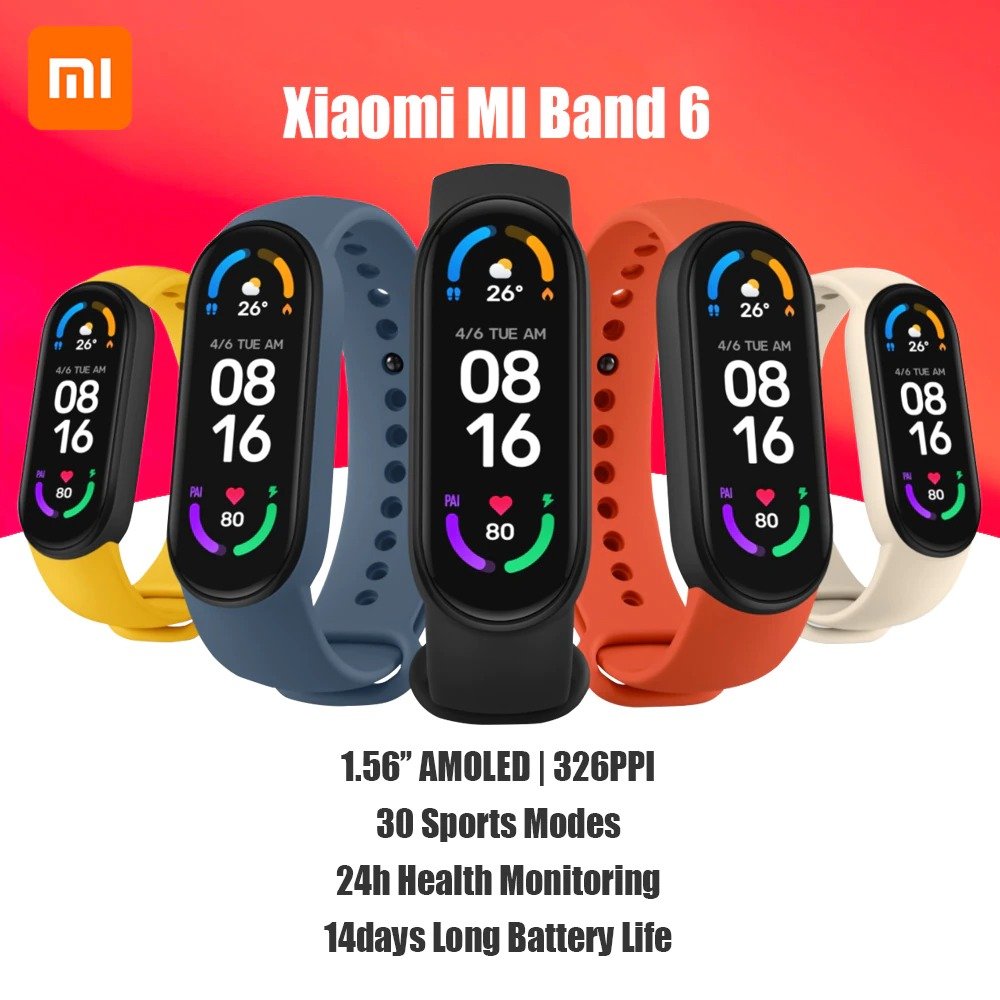 Mi Band 6 ปรับขนาดหน้าจอ AMOLED ให้ใหญ่ขึ้นกว่ารุ่นก่อนหน้าอย่าง Mi Band 5 ถึง 50% โดยมีขนาดหน้าจอที่ 1.56 นิ้ว โชว์แบบเต็มจอ ความละเอียด 152 x 486 พิกเซล มีฟีเจอร์ออกกำลังกายมาให้ถึง 30 แบบ (รุ่นเก่ารองรับ 11 โหมดออกกำลังกาย) ที่สำคัญอีกอย่างเลย คือ สามารถวัดระดับออกซิเจนในเลือด (SPO2) ได้ วัดอัตราการเต้นของหัวใจ ติดตามการนอนหลับ รอบประจำเดือนสำหรับผู้หญิง วัดความเครียด และท้ายสุดหน้าปัดจอ มีมาให้เลือกกันถึง 130 แบบ เปลี่ยนใช้งานได้ไม่ซ้ำกันเลย