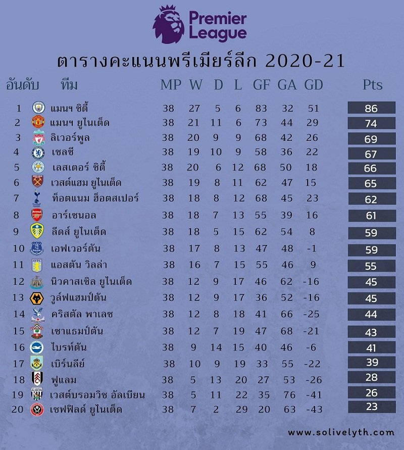 พรีเมียร์ลีก 2020-21 ปิดฤดูกาลไปแล้วเมื่อค่ำคืนที่ผ่านมา ทีมโปรดของคุณจะมีสถิติที่ดีขึ้นหรือแย่ลงจากฤดูกาลก่อน Solivelyth ได้รวบรวมไว้ในบทความนี้แบบละเอียดยิบ! ไปเช็คกันเลย