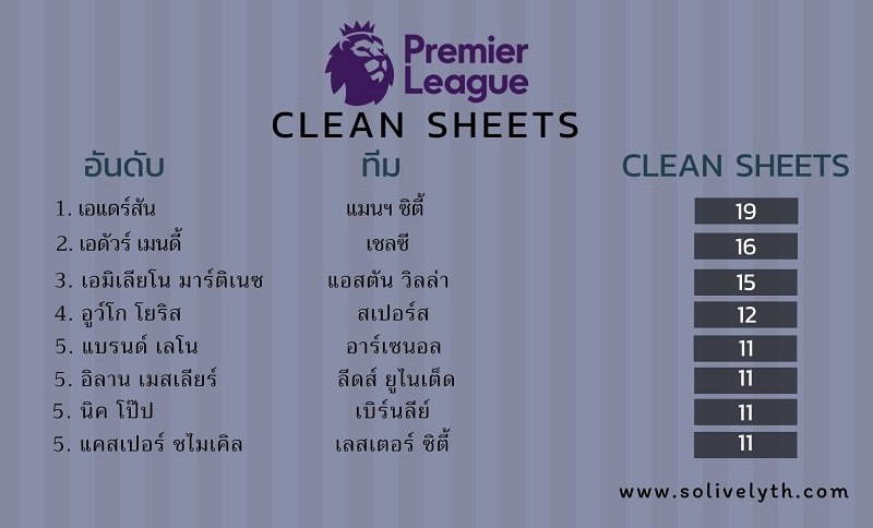 เอแดร์สัน ผู้รักษาประตูจากทีมแชมป์เก็บคลีนชีทได้มากที่สุดในฤดูกาลนี้