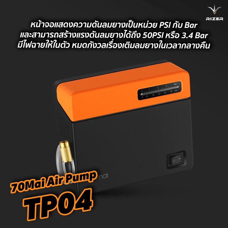 6. เครื่องปั๊มลมยางแบบพกพา 70Mai Air Pump TP04 สามารถสร้างแรงดันลมให้ยางได้สูงสุดถึง 50 PSI หรือประมาณ 3.4Bar ค่ะ
