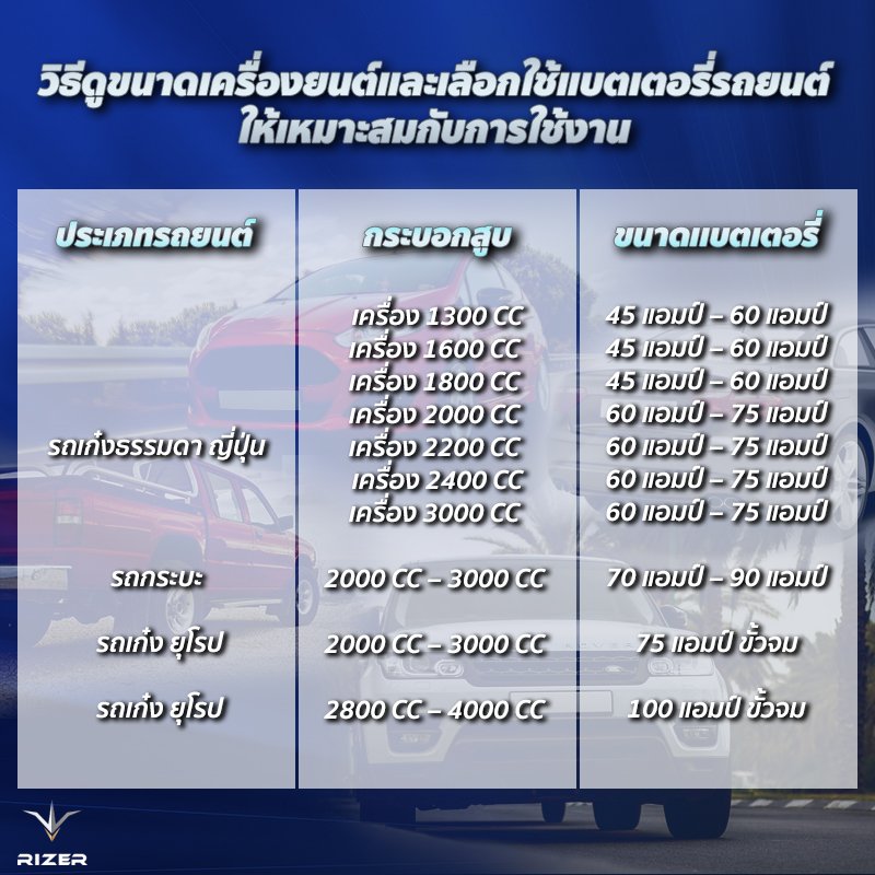 วิธีดูขนาดเครื่องยนต์และเลือกใช้แบตเตอรี่รถยนต์ให้เหมาะสมกับการใช้งาน