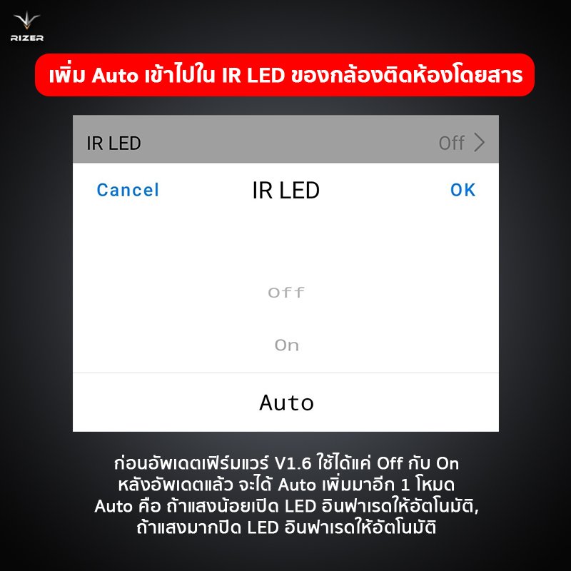 1. เพิ่ม Auto เข้าไปใน IR LED ของกล้องติดห้องโดยสาร