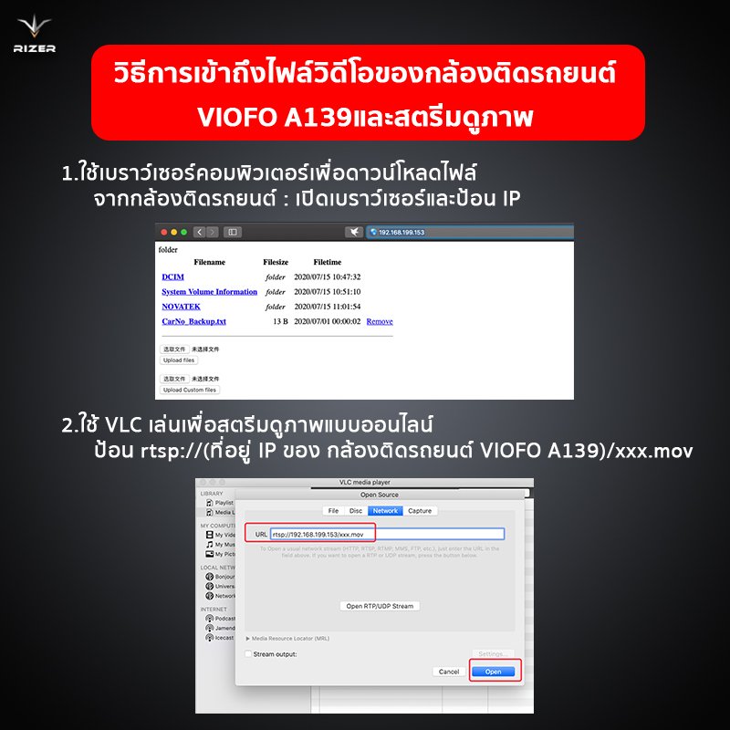 วิธีการเข้าถึงไฟล์วิดีโอของกล้องติดรถยนต์ VIOFO A139 และสตรีมดูภาพ