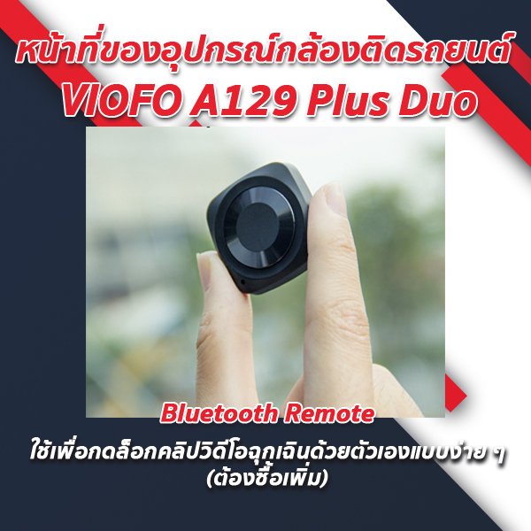 เป็นอุปกรณ์เสริมที่ช่วยให้การกดล็อกคลิปวิดีโอทำได้ง่ายขึ้น เพราะปกติเวลาจะกดล็อกคลิปวิดีโอจะต้องไปกดที่ตัวกล้องติดรถยนต์แต่ถ้าซื้อ Bluetooth Remote เพิ่มก็สามารถติดไว้ใกล้ ๆ ตัวเมื่อเจอเหตุฉุกเฉินก็กดล็อกคลิปได้เลยโดยที่ไม่ต้องเสียเวลาเอื้อมมือไปกดที่ตัวกล้องติดรถยนต์นั้นเองค่ะ