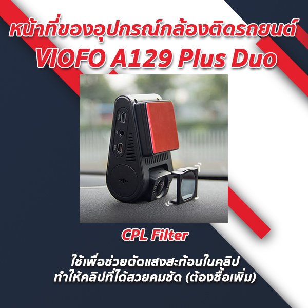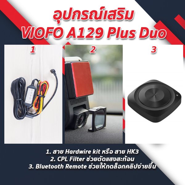 อธิบายหน้าที่ของอุปกรณ์ของกล้องติดรถยนต์ VIOFO A129 Plus Duo เพิ่มเติม