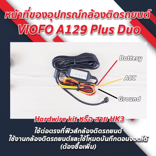 ถ้าเลือกใช้งานกล้องติดรถยนต์ด้วยสายกล้องหน้าอันนี้ จะใช้งานกล้องติดรถยนต์ได้ปกติแต่จะไม่สามารถใช้งานโหมดบันทึกตอนจอดของกล้องติดรถยนต์ VIOFO A129 Plus Duo ได้ถ้าต้องการใช้โหมดบันทึกตอนจอดจะต้องใช้สาย hardwire Kit หรือสาย HK3 ค่ะ