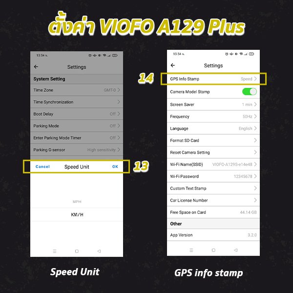 15. Camera Model Stamp เป็นส่วนที่ ถ้าเปิดไว้ในคลิปวิดีโอจะมีชื่อ VIOFO A129Plus อยู่ในคลิปวิดีโอด้วยค่ะ