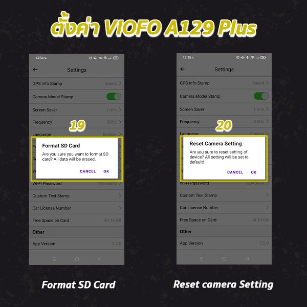 20. Reset camera Setting เป็นส่วนที่รีเซ็ทการตั้งค่ากล้องติดรถยนต์ของเราทั้งหมดให้กลับสู่การตั้งค่าเริ่มต้นที่ทางโรงงานตั้งมาให้นั่นเองค่ะ