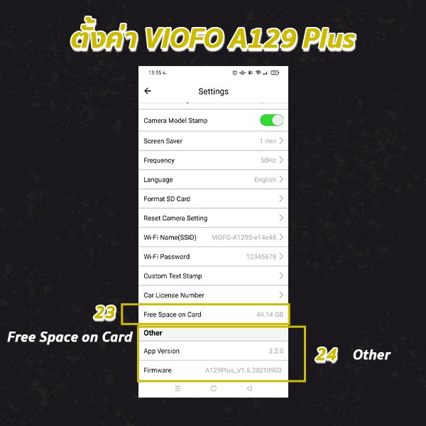 24. Other เป็นส่วนที่บอกว่ากล้องติดรถยนต์ VIOFO A129 Plus Duo เป็น Version อะไรและเป็น Firmware ตัวไหนนั้นเองค่ะ