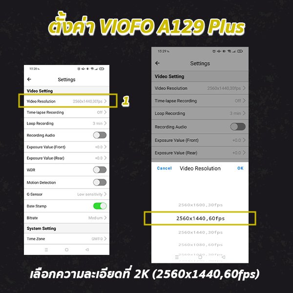 1. Video resolution เป็นการตั้งค่าความละเอียดของกล้องหน้า A129 Plus แนะนำให้เลือกใช้งานค่าที่เป็น 2K เพื่อที่คลิปที่ได้จะได้สวยคมชัดนั่นเองค่ะ