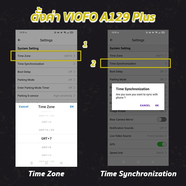 2. Time Synchronization เป็นส่วนที่ Sync วันที่กับเวลาให้เวลาในกล้องติดรถยนต์ตรงกับในมือถืออัตโนมัติค่ะ