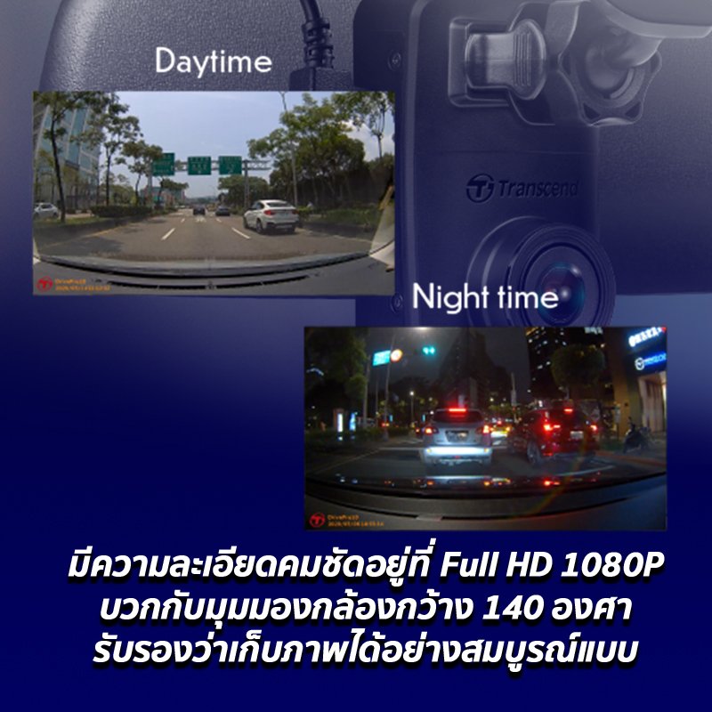 กล้องติดรถยนต์ Transcend DrivePro 10 รองรับความละเอียดในการบันทึก Full HD เฟรมเรทของภาพ 60 เฟรมต่อวินาที เลยทำให้กล้องติดรถยนต์ Transcend DrivePro 10 บันทึกภาพได้อย่างไหลลื่นและระบุรายละเอียดที่สำคัญในคลิปวิดีโอได้อย่างชัดเจน เช่น ป้ายทะเบียนรถ เป็นต้น บวกกับมุมมองของกล้องที่กว้างถึง 140 องศาที่บันทึกภาพได้กว้างทั่วทั้งเลนถนน ถ้าเกิดอุบัติเหตุอยู่แล้วบริเวณด้านหน้ากล้องติดรถยนต์รับรองได้เลยว่านอกจากจะได้ภาพที่สว่างคมชัดแล้วก็ยังเก็บภาพได้อย่างครอบคลุมอีกด้วยค่ะ
