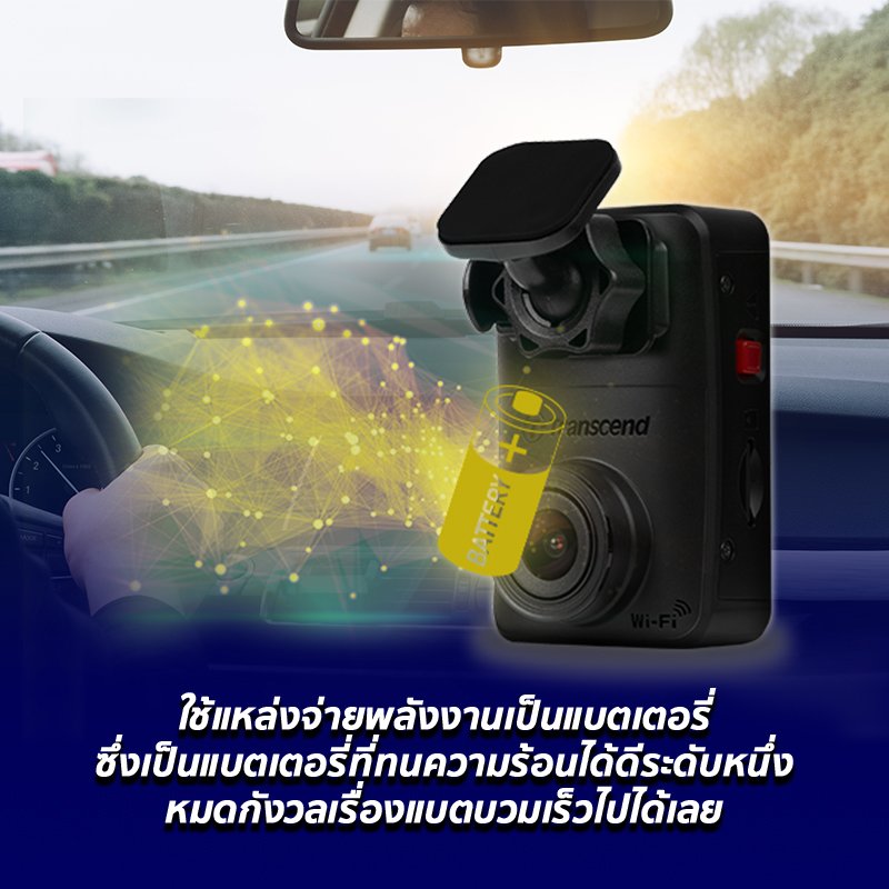 กล้องติดรถยนต์ที่ใช้แหล่งจ่ายพลังงานเป็นแบตเตอรี่ อย่างกล้องติดรถยนต์ Transcend DrivePro 10 จะมีข้อดีคือ ในกรณีที่เครื่องยนต์ดับไม่ว่าเราจะดับเครื่องยนต์เองหรือเกิดอุบัติเหตุแล้วเครื่องยนต์ดับกะทันหัน แบตเตอรี่ในกล้องติดรถยนต์จะทำหน้าที่หน่วงไฟไว้เล็กน้อยเพื่อใช้บันทึกคลิปวิดีโอไฟล์สุดท้ายให้เสร็จสมบูรณ์นั่นเองค่ะ