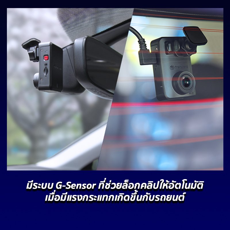 กล้องติดรถยนต์ Transcend DrivePro 10 มีระบบ G-Sensor ที่ล็อกไฟล์ให้อัตโนมัติเมื่อมีแรงกระแทกเกิดขึ้นที่รถยนต์ ซึ่งแรงกระแทกที่จะทำให้กล้องติดรถยนต์ล็อกคลิปได้จะต้องเป็นแรงกระแทกที่ค่อนข้างแรงระดับหนึ่งด้วย เช่น การปิดประตูรถยนต์แรง ๆ แบบนี้เป็นต้นค่ะ ซึ่งข้อดีคือ คลิปที่ล็อกด้วย G-Sensor จะถูกบันทึกแยกไว้ และไม่ถูกวนทับอัตโนมัติเมื่อเมมเต็ม ทำให้มั่นใจได้เลยว่าคลิปจะไม่มีทางหายไปไหนแน่นอนจนกว่าเราจะเป็นคนกดลบเองค่ะ