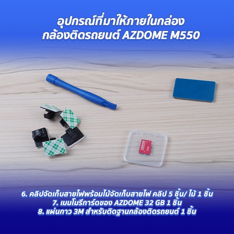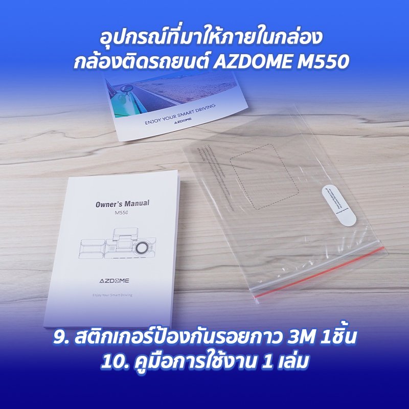 อุปกรณ์ที่มาให้ภายในกล่องของกล้องติดรถยนต์ AZDOME M550
