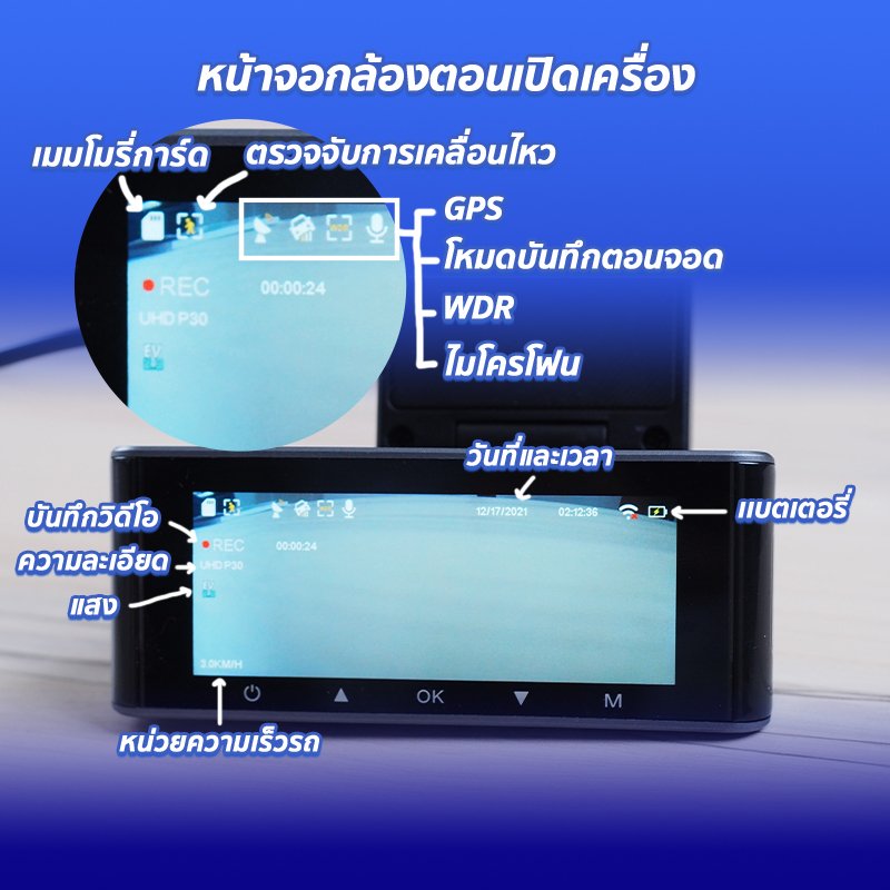 อธิบายปุ่มใช้งานที่ตัวกล้องติดรถยนต์ AZDOME M550