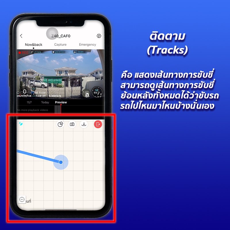 ติดตาม (Tracks) คือ แสดงเส้นทางการขับขี่ สามารถดูเส้นทางการขับขี่ย้อนหลังทั้งหมดได้ว่าขับรถรถไปไหนมาไหนบ้างนั่นเองค่ะ ซึ่งข้อมูล กับ ติดตาม ใช้งานได้เฉพาะรุ่นที่มี GPS เท่านั้น