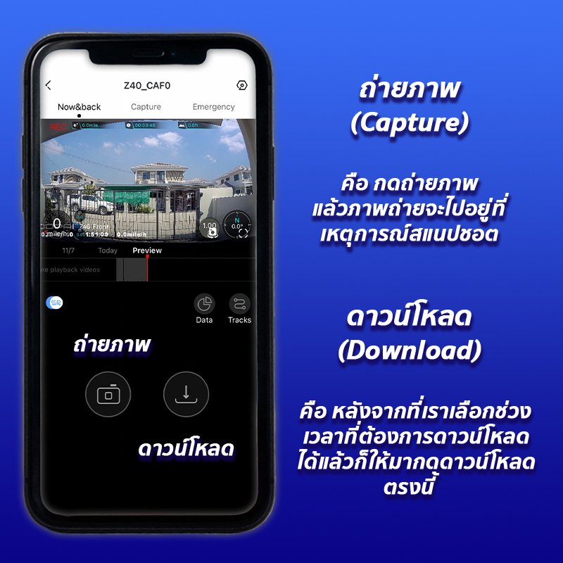ถ่ายภาพ (Capture) คือ กดถ่ายภาพ แล้วภาพถ่ายจะไปอยู่ที่ เหตุการณ์สแนปชอต ค่ะ