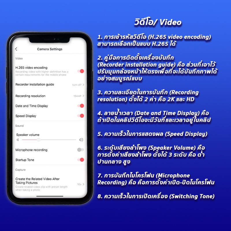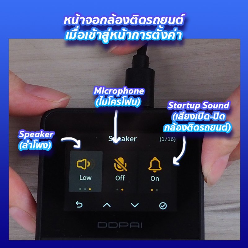 1. Speaker (ลำโพง) คือการตั้งค่าเสียงลำโพง ตั้งได้ 3 ระดับ คือ ต่ำ ปานกลาง สูงค่ะ