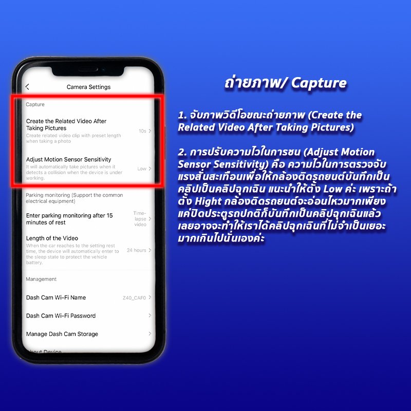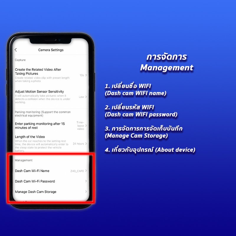 1. เปลี่ยนชื่อ WIFI (Dash cam WIFI name)