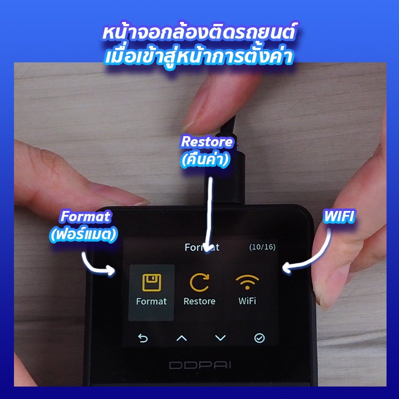 11. Restore (คืนค่า) คือ การคืนค่ากล้องติดรถยนต์เป็นค่าที่ตั้งต้นมาจากโรงงานค่ะ