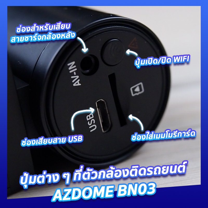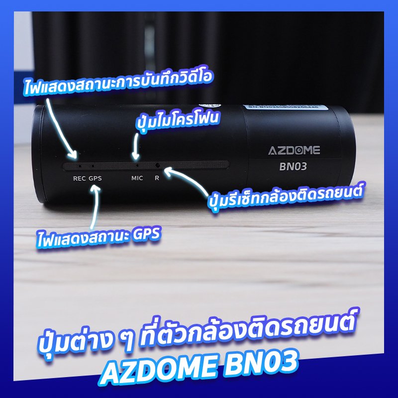 ปุ่มต่าง ๆ ที่ตัวกล้องติดรถยนต์ AZDOME BN03