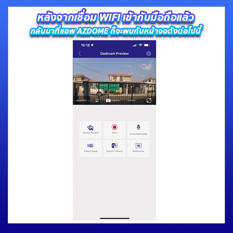 1. หลังจากเชื่อม WIFI เข้ากับมือถือแล้วก็ให้กลับมาที่แอพ AZDOME ก็จะพบกับหน้าจอดังต่อไปนี้