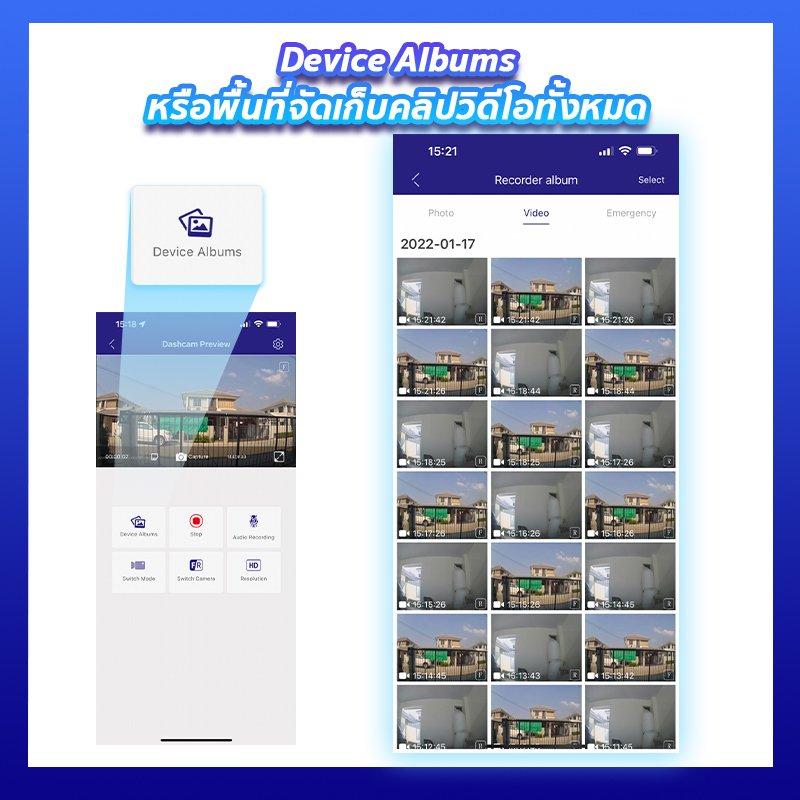 ก่อนอื่นเลยก็ให้ไปที่ Device Albums เลือกคลิปวิดีโอที่ต้องการดาวห์โหลดเลือกได้ทั้งที่ Video และก็ Emergency หลังจากเลือกคลิปได้แล้ว