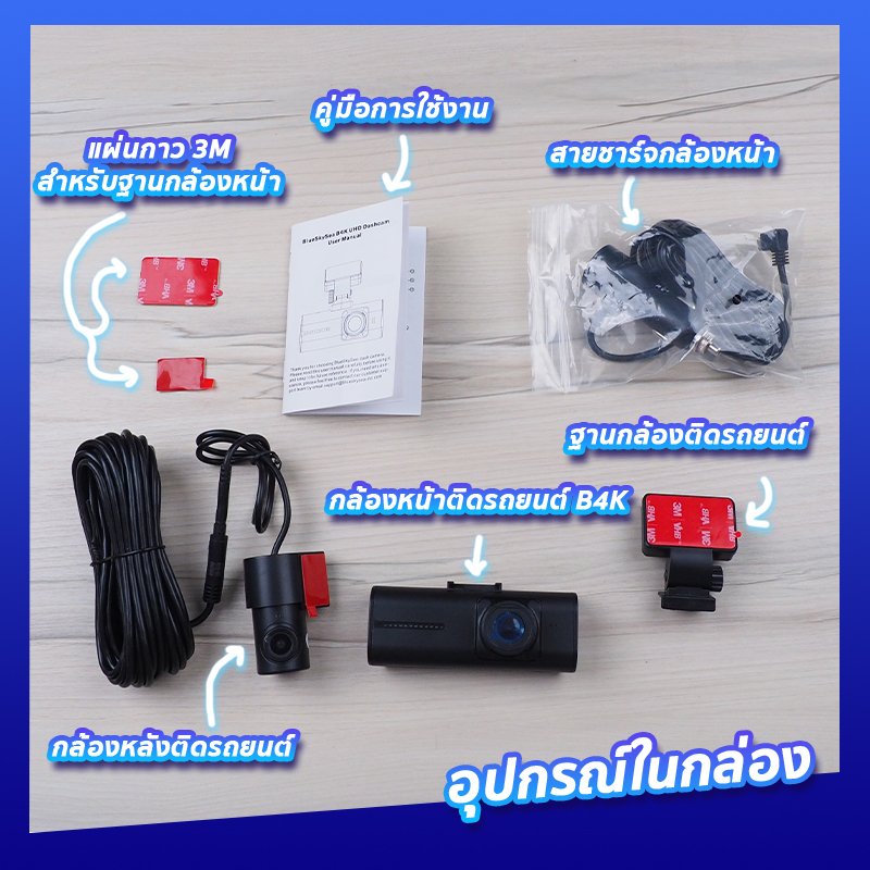 อุปกรณ์ที่มีให้ภายในกล่องของกล้องติดรถยนต์ Blueskysea B4K