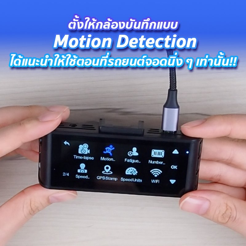 ** Motion Detection เป็นคนละตัวกับ Motion Detection Parking Mode ในโหมดบันทึกตอนจอดแต่หลักการทำงานเหมือนกัน คือบันทึกคลิปเมื่อมีสิ่งเคลื่อนไหวผ่านหน้ากล้องติดรถยนต์เท่านั้น
