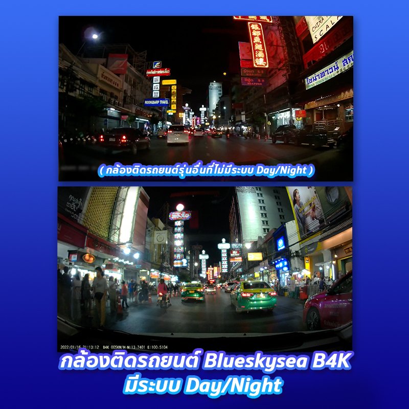 3. กล้องติดรถยนต์ Blueskysea B4K มีระบบ Day/Night ที่ปรับแสงให้อัตโนมัติ ซึ่งระบบ Day/Night ในที่นี้ก็คือโหมด WDR ซึ่งมีมาให้แล้วในตัว WDR เป็นตัวที่ช่วยทำให้คลิปมีความสว่างเท่ากันทั่วทั้งภาพ