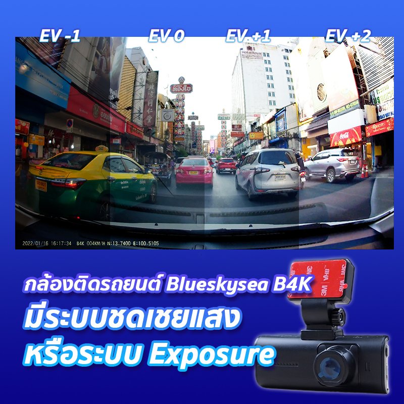 5. กล้องติดรถยนต์ Blueskysea B4K มีระบบชดเชยแสง หรือระบบ Exposure