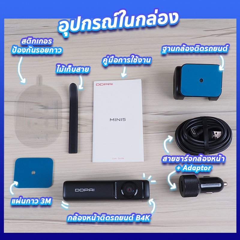 อุปกรณ์ที่มีให้ภายในกล่องของกล้องติดรถยนต์ DDpai MINI 5