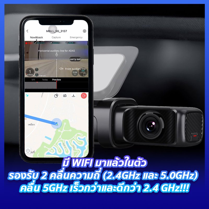 6. กล้องติดรถยนต์ DDpai MINI 5 มี WIFI มาแล้วในตัวและรองรับทั้ง 2 คลื่นความถี่ คือ 2.4GHz และ 5.0GHz ซึ่งคลื่นความถี่ที่ 5.0GHz นั้นจะดาวห์โหลดไฟล์ได้เร็วกว่าคลื่นความถี่ 2.4GHz และหน้าที่ของ WIFI ก็คือเชื่อมกล้องติดรถยนต์ DDpai MINI 5 เข้ากับมือถือเพื่อเข้าใช้งานผ่านทางแอพ DDPAI ซึ่งเป็นข้อบังคับว่าต้องทำเพราะทั้งการตั้งค่า ดูคลิป และดาวห์โหลดคลิปจะต้องทำผ่านทางแอพ DDPAI ทั้งหมดนั่นในมือถือทั้งหมดนั่นเองค่ะ