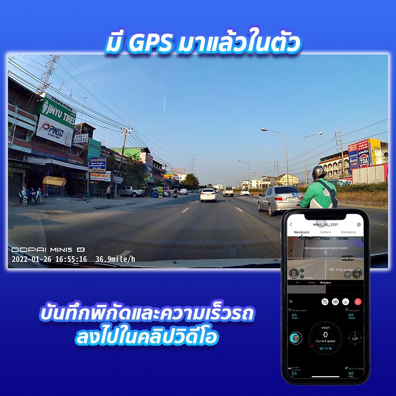 8. กล้องติดรถยนต์ DDpai MINI 5 มี GPS มาแล้วในตัว ซึ่ง GPS ทำหน้าที่ บันทึกพิกัดและความเร็วรถลงไปในคลิปวิดีโอ