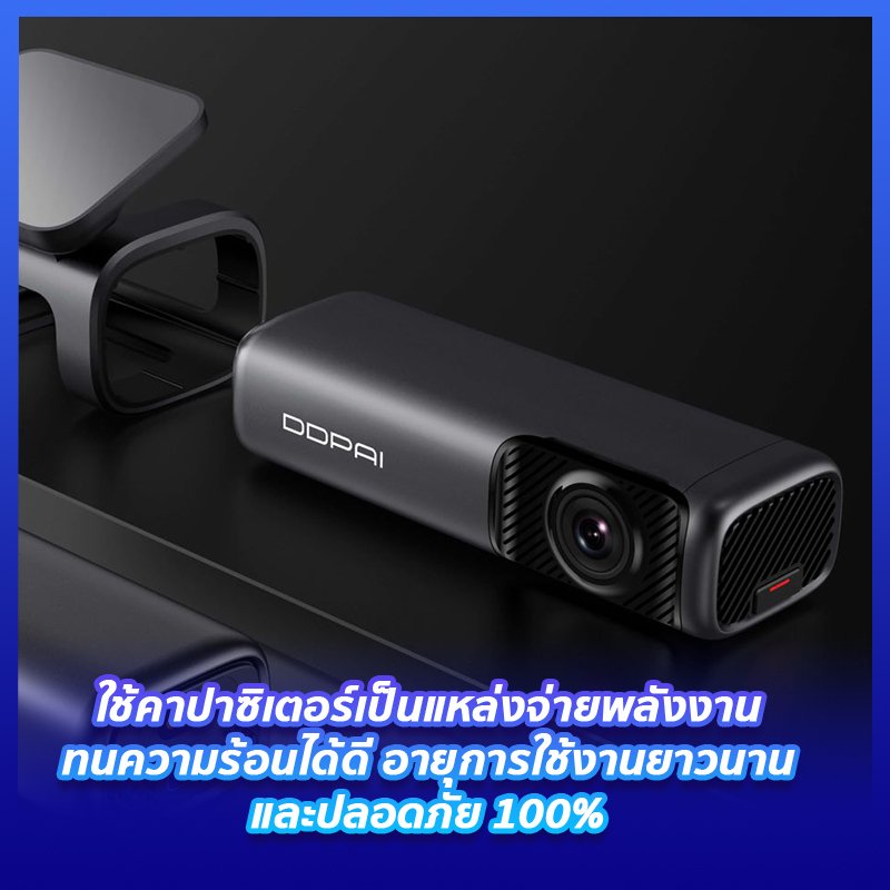 10. กล้องติดรถยนต์ DDpai MINI 5 ใช้คาปาซิเตอร์เป็นแหล่งจ่ายพลังงาน ซึ่งคาปาซิเตอร์นั้นจะทนความร้อนได้ดีกว่าแบตเตอรี่ อายุการใช้งานยาวนานกว่าเพราะ ไม่บวม และเสื่มสภาพ หรือระเบิด ได้เหมือนแบตเตอรี่ เลยมีความปลอดภัยมากกว่าแน่นอนถึง 100% นั่นเองค่ะ