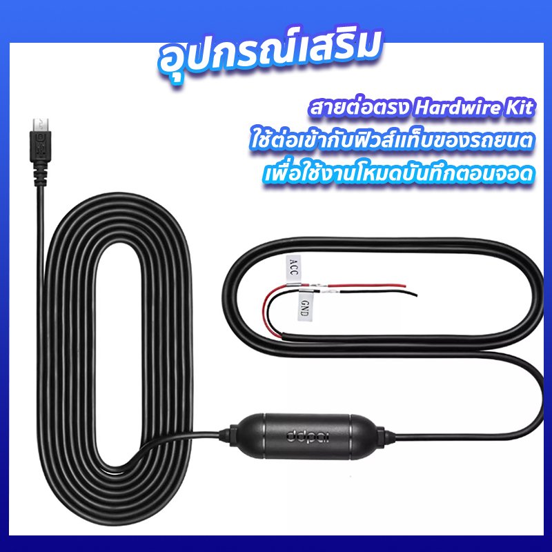 1. สายต่อตรง Hardwire Kit เป็นสายที่ถ้าใครต้องการใช้งานโหมดบันทึกตอนจอดของกล้องติดรถยนต์ DDpai MINI 5 จะต้องใช้สายนี้ รวมถึงคนที่ใช้รถยนต์เครื่องยุโรปเพราะว่ารถยนต์เครื่องยุโรปตอนที่ดับเครื่องยนต์ ไฟจากช่องจุดบุหรี่มันจะไม่ถูกตัดไปด้วยกล้องติดรถยนต์มันเลยยังทำงานอยู่ ถ้าไม่อยากให้กล้องติดรถยนต์ทำงานก็แนะนำให้ใช้สายต่อตรง Hardwire Kit ต่อเข้ากับฟิวแท็บช่องที่ตัดไฟอัตโนมัติหลังจากที่ดับเครื่องยนต์นั่นเองค่ะ